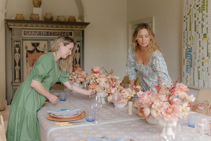 Sculptural shapes elevated a palette of blush pinks for this bridal shower, creating a coherent event palette of gentle blues and romantic pinks at No. 15 by Guesthouse, Bath.
